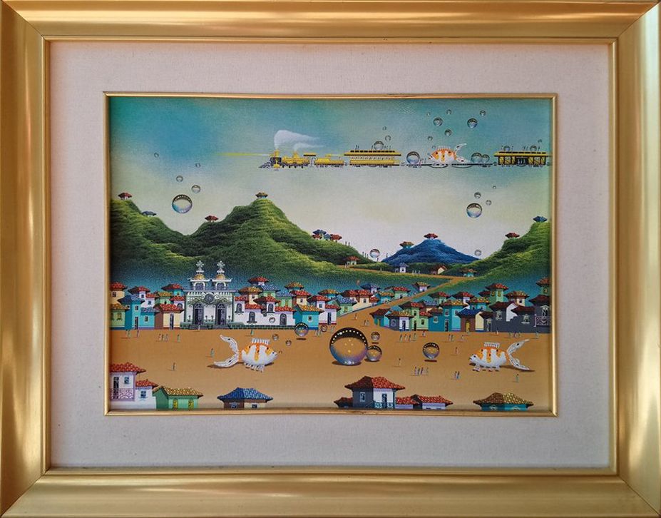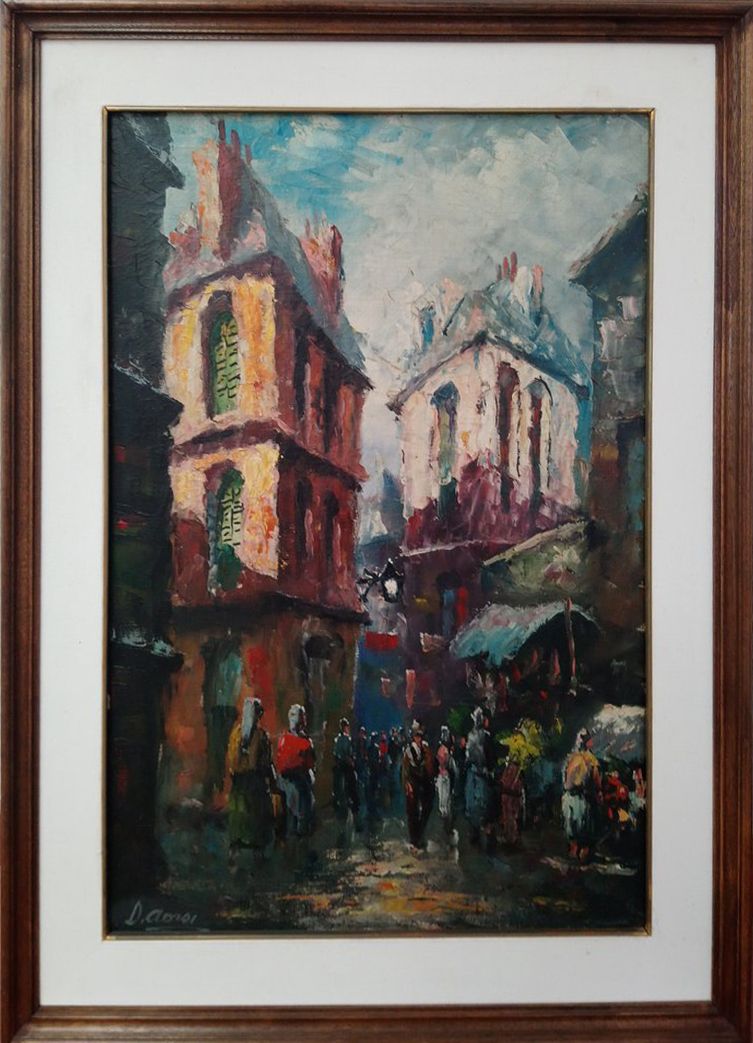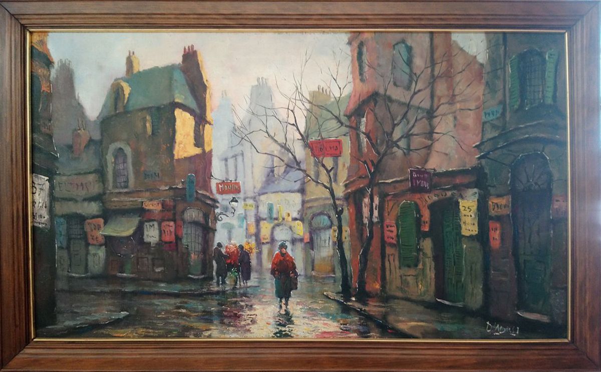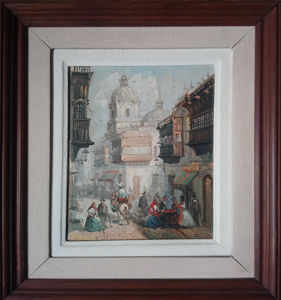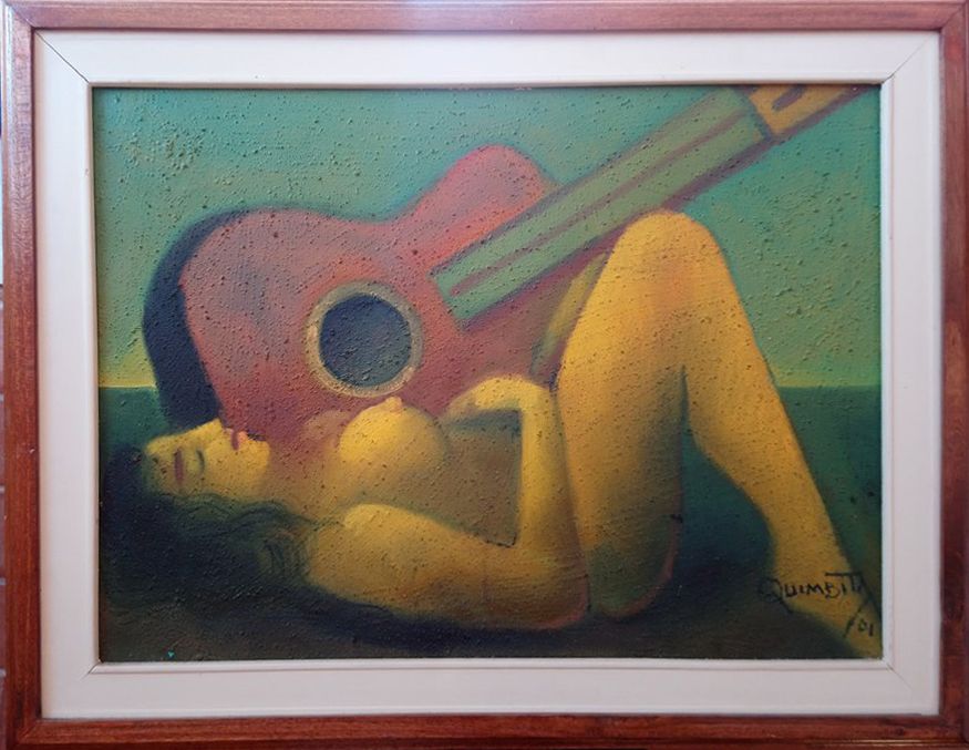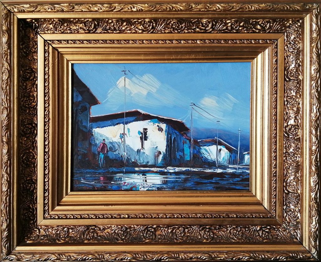 El cuadro es una pintura al óleo sobre lienzo del pintor contemporáneo uruguayo Dante Cola.