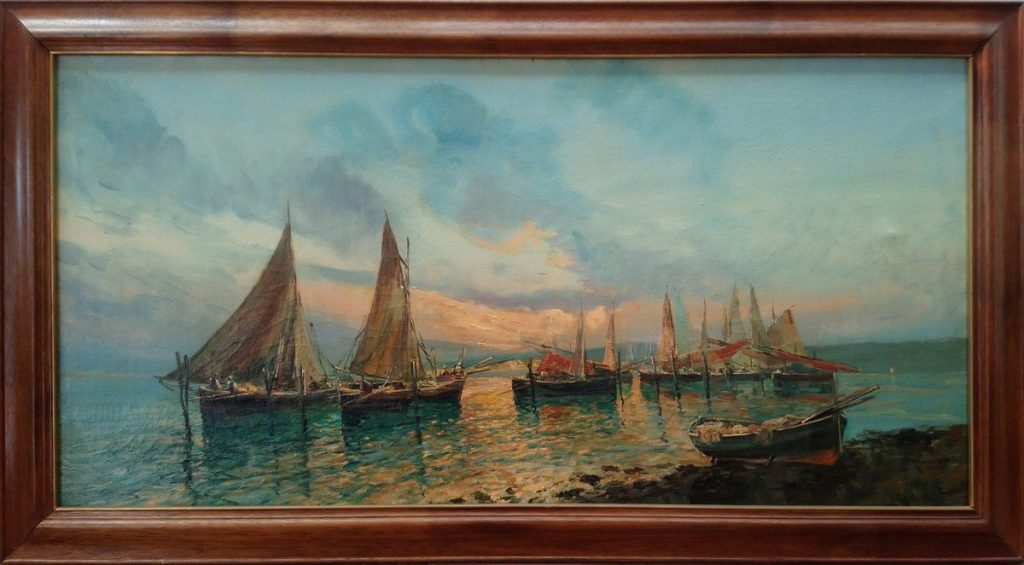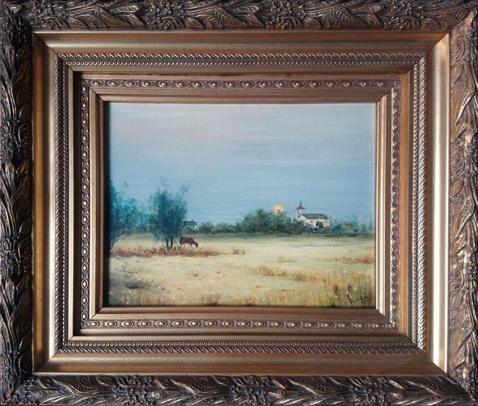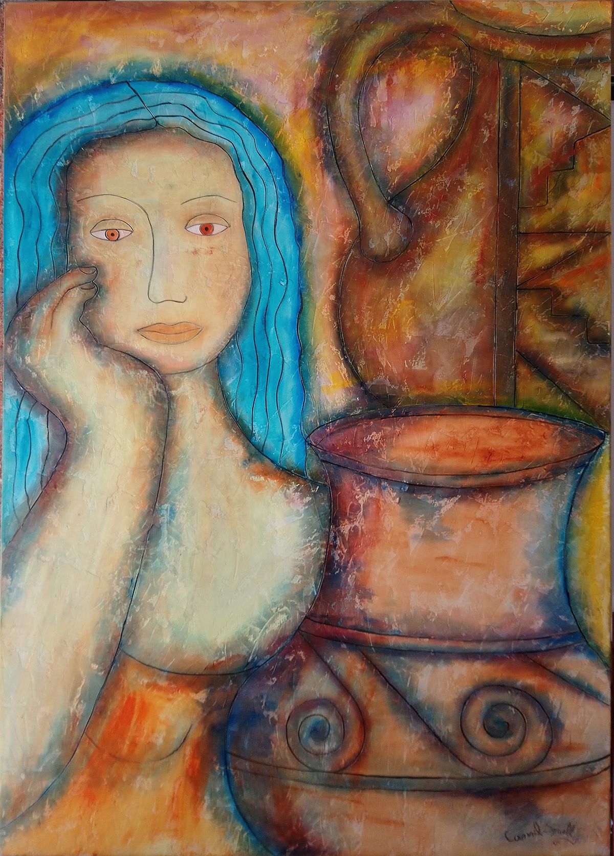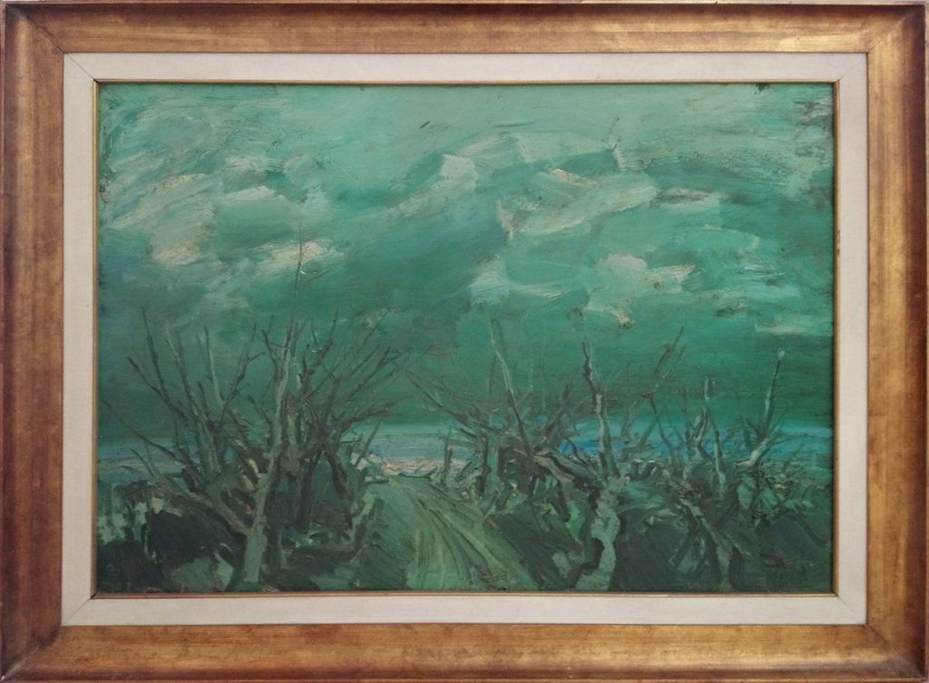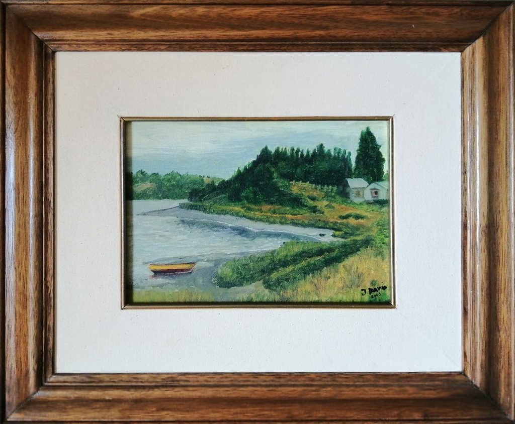 El cuadro es una pintura al óleo sobre lienzo del pintor contemporáneo uruguayo Dante Cola.