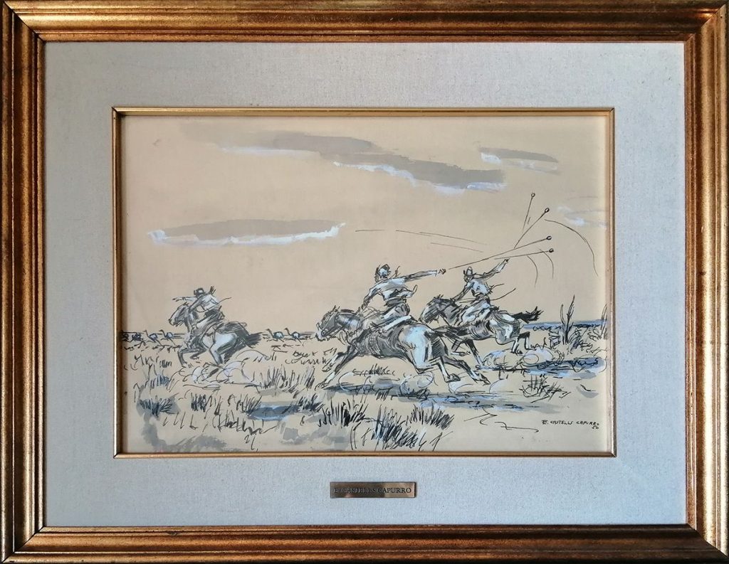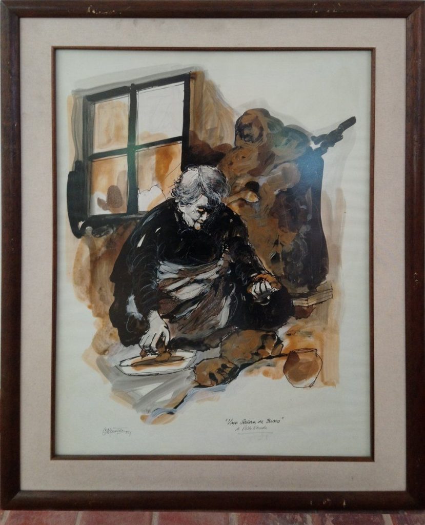 Reproducción en papel de una acuarela del artista uruguayo Pedro Figari.